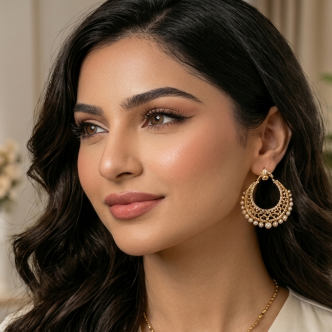 Traditional Elegance: Hamaara Chandbali design ethnic dresses ke sath bohat khubsoorat lagta hai.